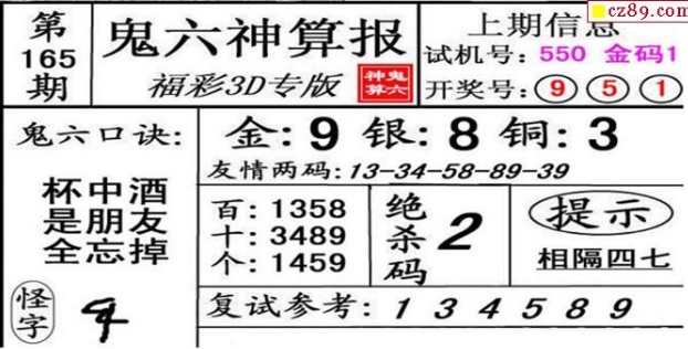 3d165期:鬼六神算图库福彩3d胆码图